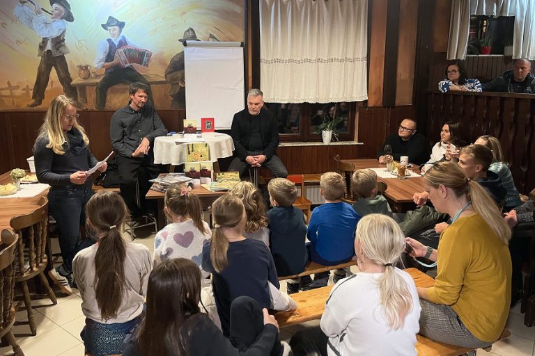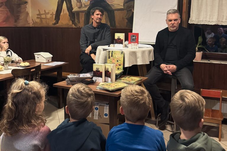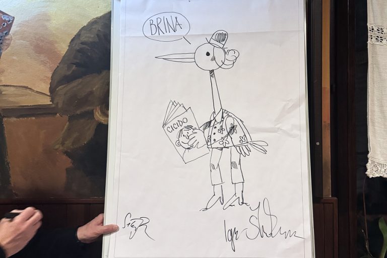 V petek sva imela nastop na Izletniški kmetiji Plazl. Najmlajše sva navdušila z najinimi dogodivščinami, ki jih je prebiral pisatelj Sebastijan, ilustrator Igor pa je najprej pokazal, kako riše Meda in Pujsija. Nato smo skupaj z obiskovalci ustvarili čisto nov lik, štorkljo Brino, ki ima rada knjige. Morda bo Sebastijan o njej napisal kakšno zgodbo. Bomo videli…