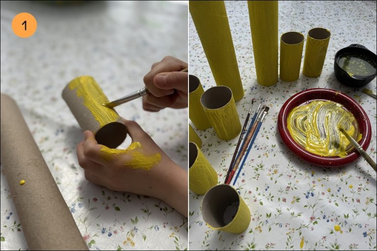 1.) Tulce pobarvamo z rumeno barvo (če želiš, lahko pobarvaš tudi notranjost).