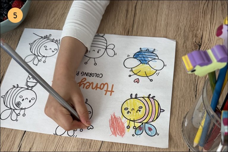 5.) Natisnemo čebelice in jih pobarvamo. Tu smo jih pripravili nekaj: Pobarvanke