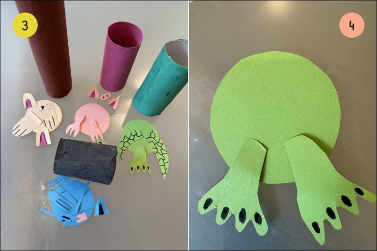 3.) Nekdo od starejših (nam sta pomagala mami in dedi) naj izreže malo večje kroge, na katere boš kasneje prilepil tulce, nogice za živali, ušesa, brke, karkoli želiš. S flomastri jih pobarvaj ali nariši nanje različne vzorce.
