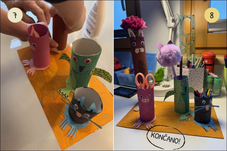 Veliko vas je navdušeno pisalo, da ste izdelali magnetke Medo in Pujsi, zato sva skupaj z najino prijateljico Vesno pripravila navodila za izdelavo stojal za barvice in druge pisarniške pripomočke. Tvoj delovni prostor bo takoj bolj živahen!