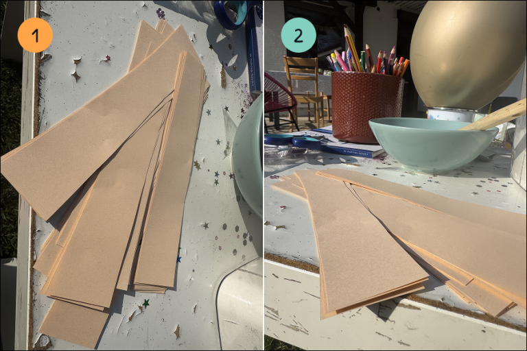 1.) Pripravi papir: papir nareži ali raztrgaj na daljše lističe.